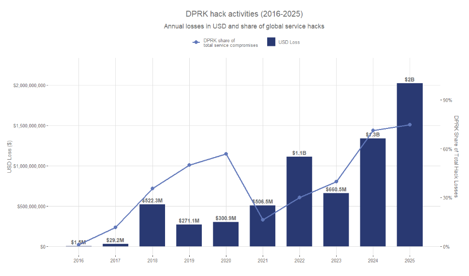 Kooxo hackers ah oo ka socda Kuuriyada Waqooyi ayaa mas’uul ka ahaa $2.02 bilyan oo Kiribto ah oo la xaday sanadkan, taasoo ka badan $681 milyan guud ahaan sanadkii 2024, iyagoo adeegsanaya farsamooyin sida gelinta shaqaalaha IT-ga ee shirkadaha Kiribto mashruucyo xog lagaga raadinayo.