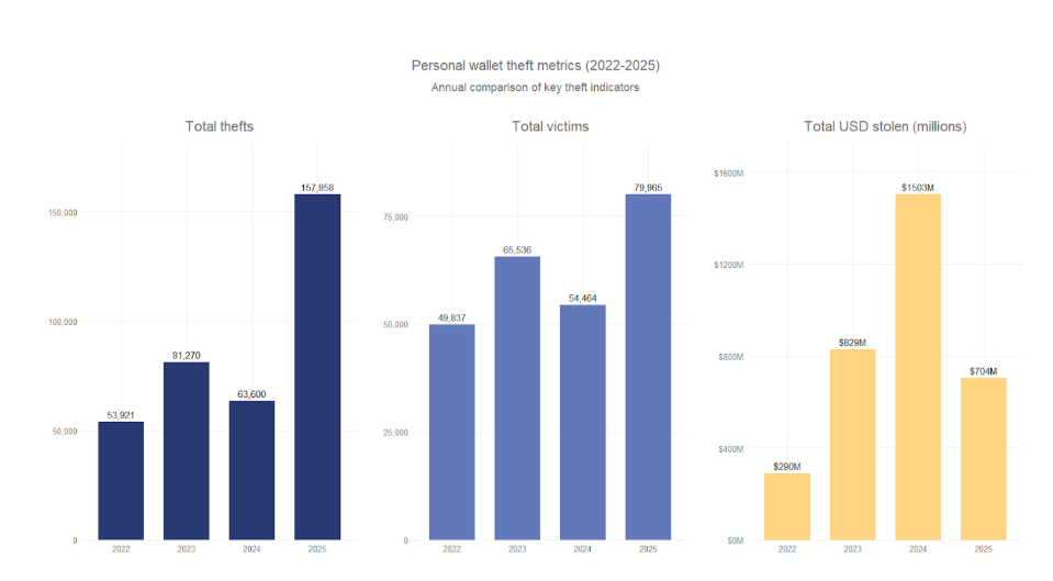 Si kastaba ha ahaatee, guud ahaan lacagta laga xaday weerarrada shaqsiyeed ayaa hoos uga dhacday $1.5 bilyan sanadkii 2024 ilaa $713 milyan sanadkan, inkastoo tirada dhacdooyinku ay ku dhowaadeen inay saddex jibaarmaan marka la barbardhigo 2022.