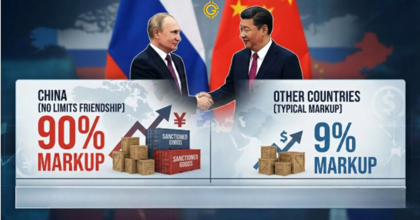 Ruushka wuxuu alaabaha Shiinaha ku bixiya markup (kordhin qiime) gaaraysa ilaa 90%, halka waddamada kale ee aan cunaqabataynta saarneyn ay Ruushka siiyaan tiro aad uga hooseysa — qiyaastii 9% oo keliya.