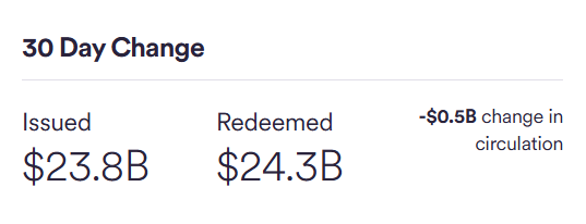 30-kii beri ee u dambeeyay Circle waxay bixisay $23.8B oo USDC ah $24.3B oo USDC ahna way qaadatay xigasho : Circle.com