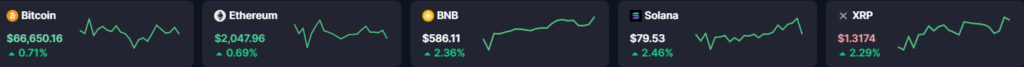 - Bitcoin (BTC) waa Coin-ka ugu qiimaha badan lacagaha Digital-ka ah e Crypto wuxuu joogaa qiimihiisa manta $66,585.21