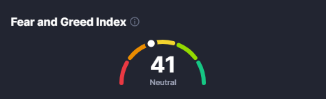 - Fear and Greed index halbeega lagu cabiro dareenka maalgashiyaasha waxuu muujinayaainuu yahay 41% taasoo ka dhigan inay hoosayso damaca maalgashiyaasha suuqa.