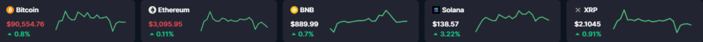 - Bitcoin (BTC) waa Coin-ka ugu qiimaha badan lacagaha Digital-ka ah e Crypto wuxuu joogaa qiimihiisa manta $90,555.21