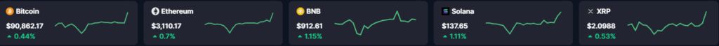 - Bitcoin (BTC) waa Coin-ka ugu qiimaha badan lacagaha Digital-ka ah e Crypto wuxuu joogaa qiimihiisa manta $90,862.21