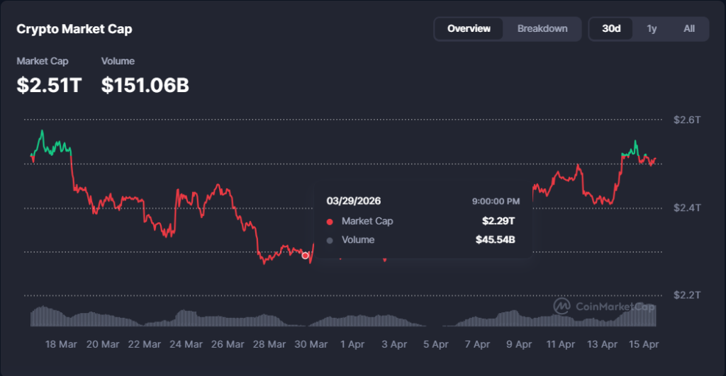 - Market Cap ka guud ee suuqa waxuu joogaa maanta $2.51 trillion, halka (Volume) hantida guud ee suuqa la isku dhaafsaday 24 saac u dambaysay ay gaarayso 151.06 billion.