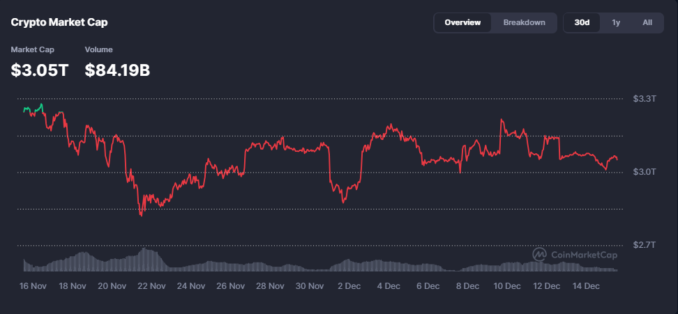 - Market Cap ka guud ee suuqa waxuu joogaa maanta $3.05 trillion, halka (Volume) hantida guud ee suuqa la isku dhaafsaday 24 saac u dambaysay ay gaarayso 84.81 billion.