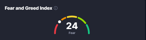 - Fear and Greed index halbeega lagu cabiro dareenka maalgashiyaasha waxuu muujinayaainuu yahay 24% taasoo ka dhigan inay hoosayso damaca maalgashiyaasha suuqa.