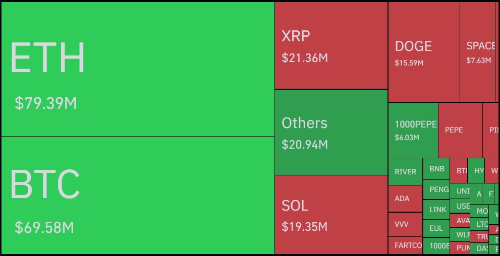 In ka badan $287.95M ayaa lagu qasaaray suuqa 24-kii saac ee la soo dhaafay, iyadoo $166.42M ay ka yimaadeen dad kor u galay suuqa (Long positions).