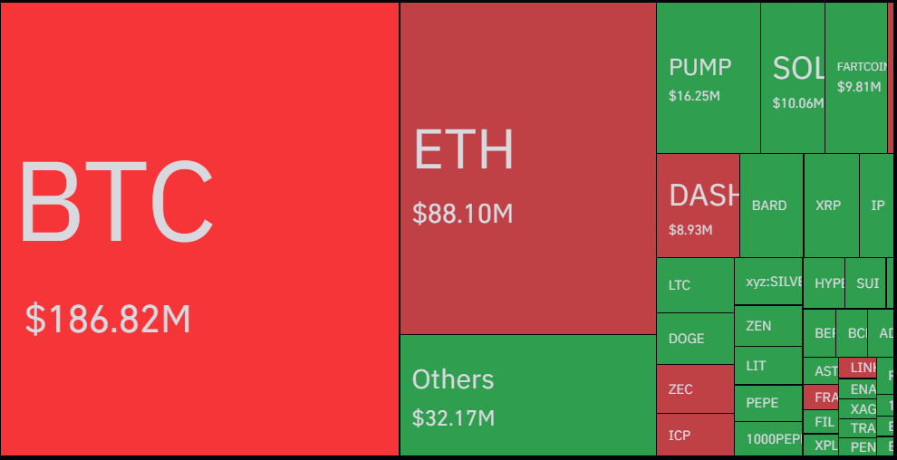 In ka badan $444.42M ayaa lagu qasaaray suuqa 24-kii saac ee la soo dhaafay, iyadoo $261.35M ay ka yimaadeen dad hoos u galay suuqa (Short positions).
