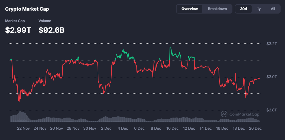 - Market Cap ka guud ee suuqa waxuu joogaa maanta $2.99 trillion, halka (Volume) hantida guud ee suuqa la isku dhaafsaday 24 saac u dambaysay ay gaarayso 92.81 billion.