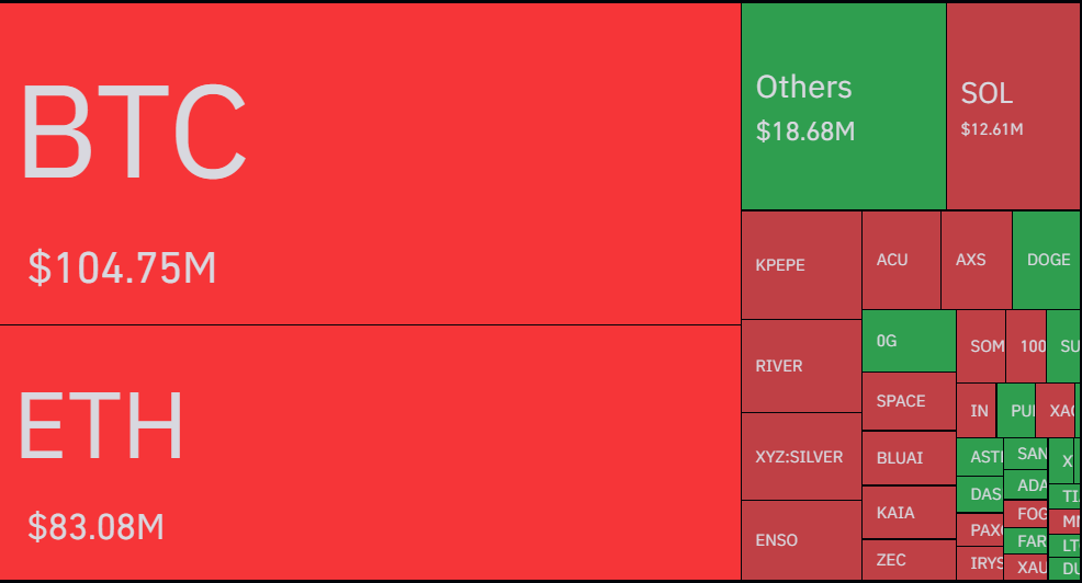 In ka badan $290.77M ayaa lagu qasaaray suuqa 24-kii saac ee la soo dhaafay, iyadoo $203.12M ay ka yimaadeen dad hoos u galay suuqa (Short positions).