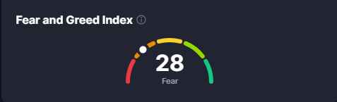 - Fear and Greed index halbeega lagu cabiro dareenka maalgashiyaasha waxuu muujinayaainuu yahay 28% taasoo ka dhigan inay hoosayso damaca maalgashiyaasha suuqa.