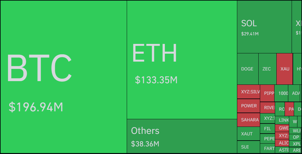 In ka badan $498.39M ayaa lagu qasaaray suuqa 24-kii saac ee la soo dhaafay, iyadoo $360.99M ay ka yimaadeen dad kor u galay suuqa (Long positions).