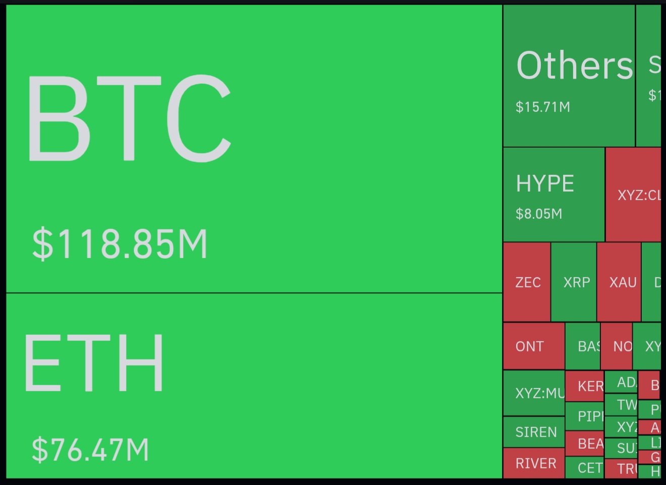 In ka badan $280.91M ayaa lagu qasaaray suuqa 24-kii saac ee la soo dhaafay, iyadoo $162.99M ay ka yimaadeen dad kor u galay suuqa (Long positions).