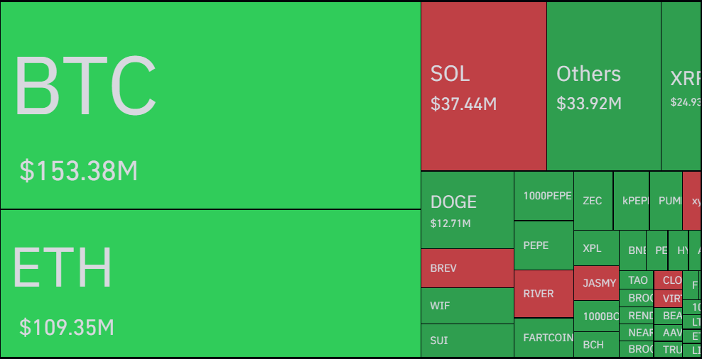 In ka badan $465.10M ayaa lagu qasaaray suuqa 24-kii saac ee la soo dhaafay, iyadoo $312.52M ay ka yimaadeen dad kor u galay suuqa (Long positions).