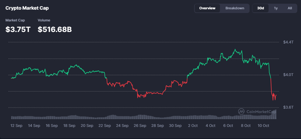 - Market Cap ka guud ee suuqa waxuu joogaa maanta $3.75trillion, halka (Volume) hantida guud ee suuqa la isku dhaafsaday 24 saac u dambaysay ay gaarayso 516.68 Billion.
