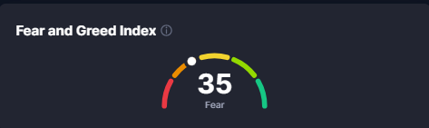 - Fear and Greed index halbeega lagu cabiro dareenka maalgashiyaasha waxuu muujinayaainuu yahay 35% taasoo ka dhigan inay hoosayso damaca maalgashiyaasha suuqa.