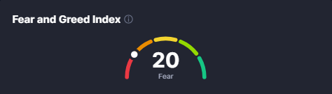 - Fear and Greed index halbeega lagu cabiro dareenka maalgashiyaasha waxuu muujinayaainuu yahay 20% taasoo ka dhigan inay hoosayso damaca maalgashiyaasha suuqa.