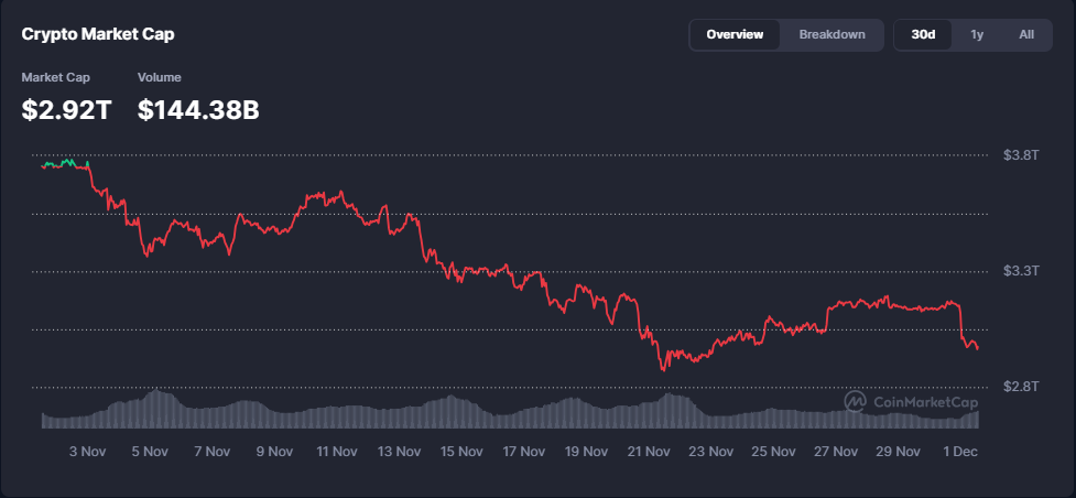 - Market Cap ka guud ee suuqa waxuu joogaa maanta $2.92 trillion, halka (Volume) hantida guud ee suuqa la isku dhaafsaday 24 saac u dambaysay ay gaarayso 144.38 billion.