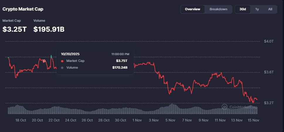 - Market Cap ka guud ee suuqa waxuu joogaa maanta $3.25 trillion, halka (Volume) hantida guud ee suuqa la isku dhaafsaday 24 saac u dambaysay ay gaarayso 195.81 billion.