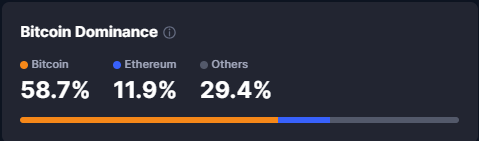 - Awooda suuqa Dominance waxaa haysto maanta Coinka Bitcoin awood dhan %58.7 halka Altcoins ay haystaan awood dhan 42.30%
