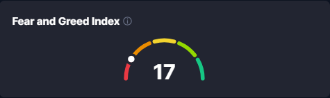 - Fear and Greed index halbeega lagu cabiro dareenka maalgashiyaasha waxuu muujinayaainuu yahay 17% taasoo ka dhigan inay hoosayso damaca maalgashiyaasha suuqa.