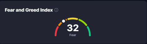 - Fear and Greed index halbeega lagu cabiro dareenka maalgashiyaasha waxuu muujinayaainuu yahay 41% taasoo ka dhigan inay hoosayso damaca maalgashiyaasha suuqa.